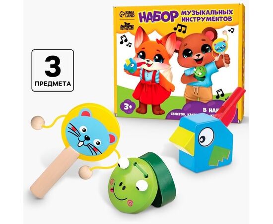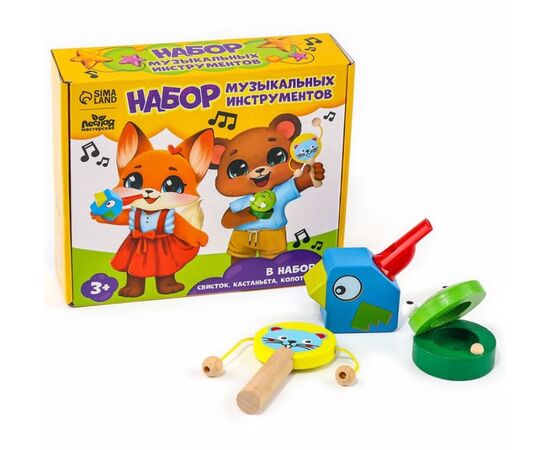 Набор музыкальных инструментов "Свистулька, кастаньета, колотушка"