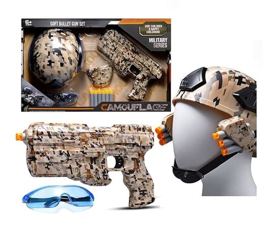 Набор оружия "Сержант: каска, пистолет, защитные очки, мягкие пули"