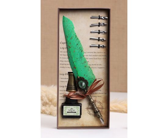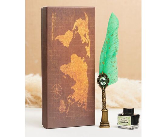 Набор подарочный 3 в 1 "Артефакт" (перьевая ручка на подставке, чернила, наконечники), зелёный