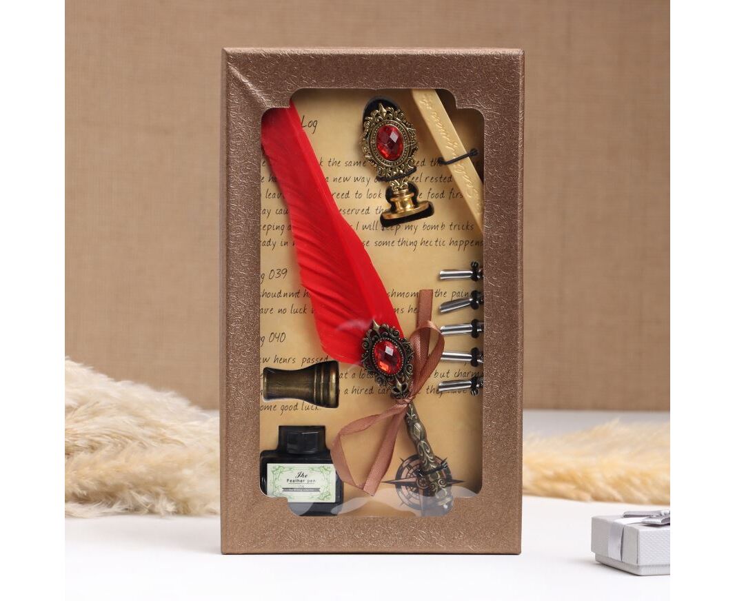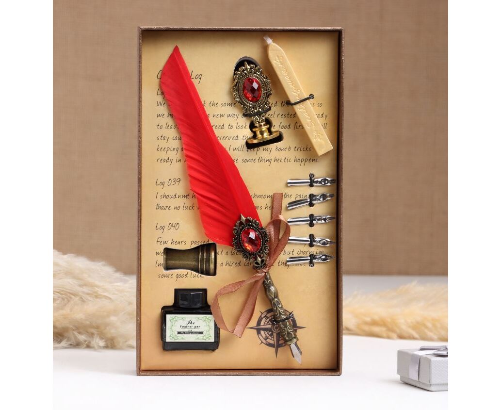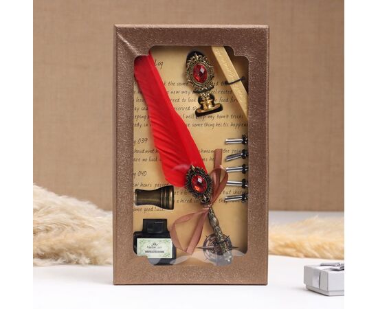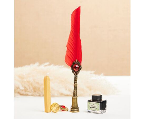 Набор подарочный 5 в 1 "Реликвия" (перьевая красная ручка, чернила, печать, воск)