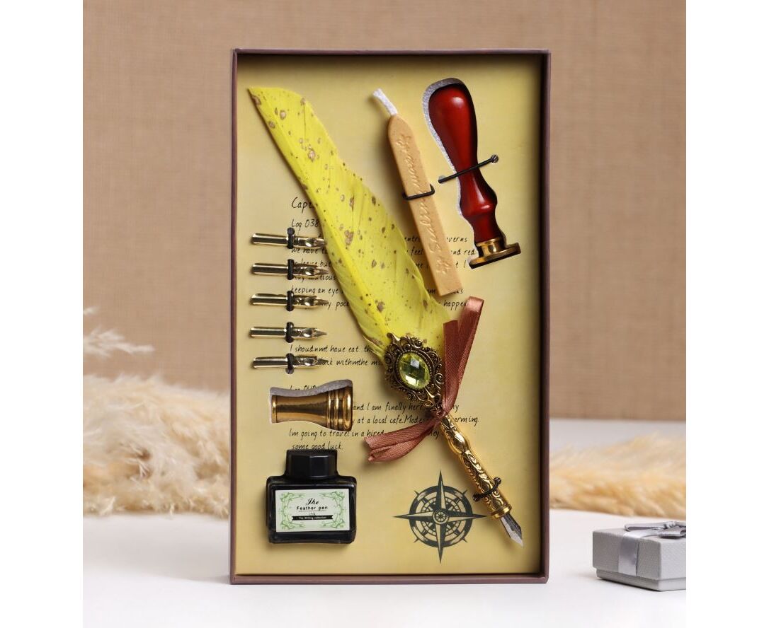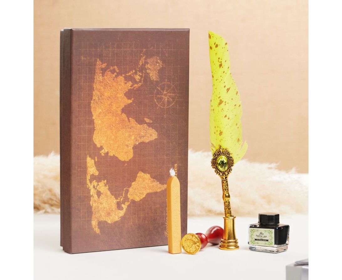 Набор подарочный 5 в 1 "Реликвия" (перьевая желтая с золотом ручка, чернила, печать, воск)