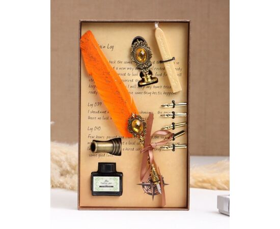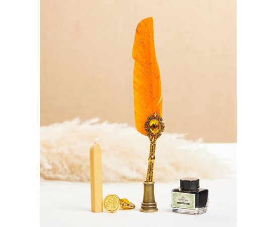 Набор подарочный 5 в 1 "Силенция" (перьевая оранжевая с золотом ручка, чернила, печать, воск)