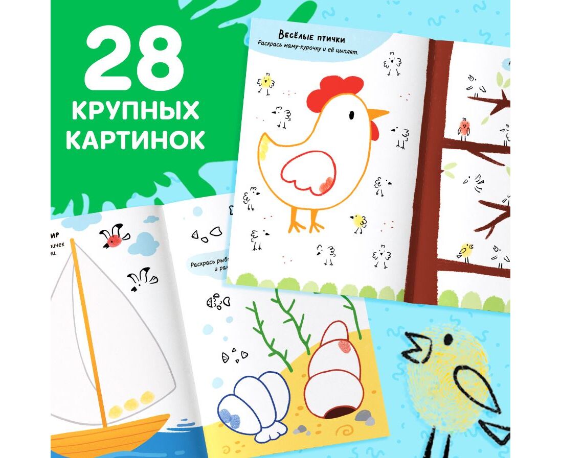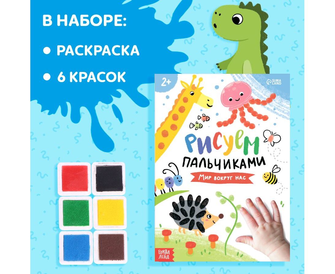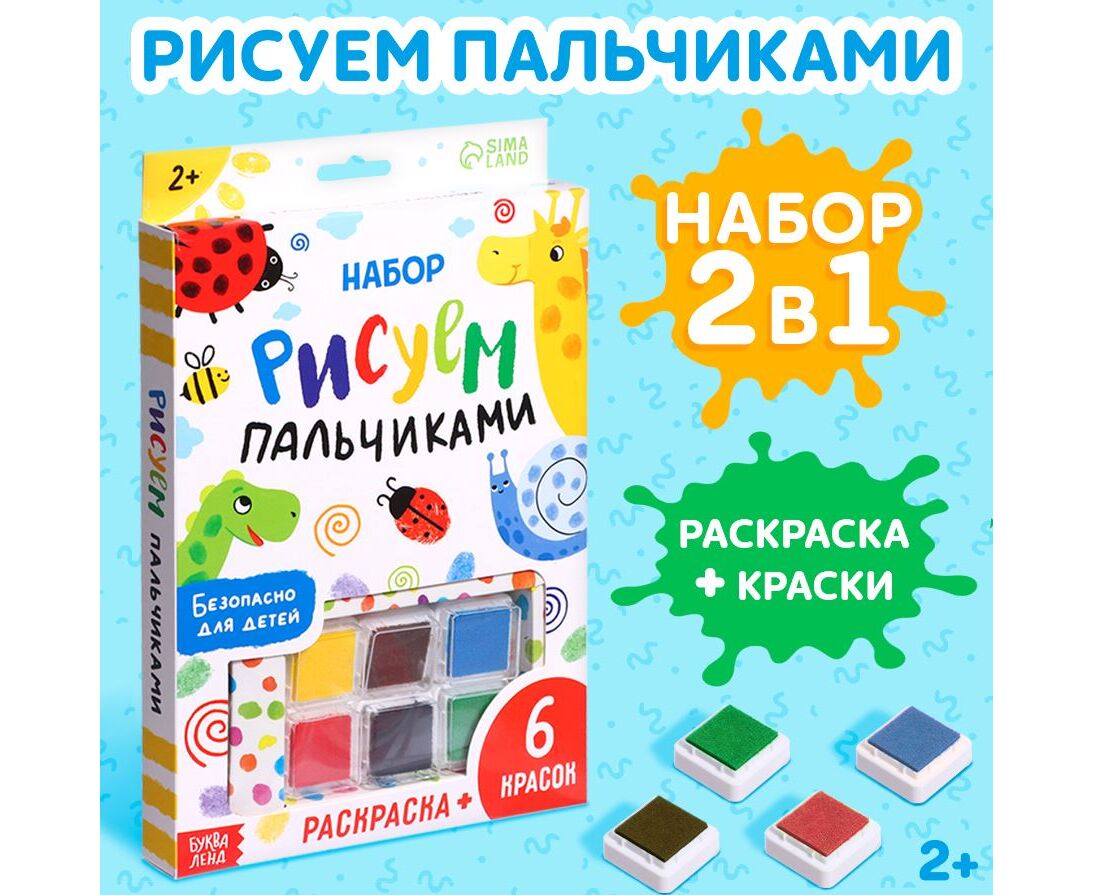 Набор "Рисуем пальчиками", раскраска, 6 красок
