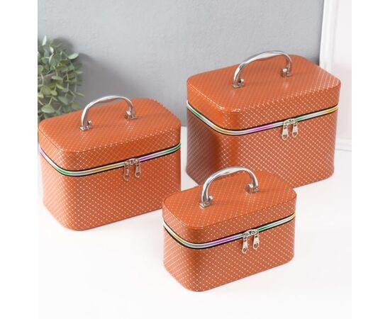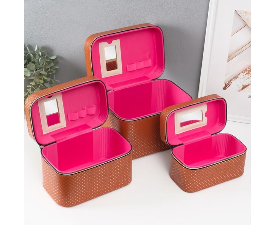Набор шкатулок для украшений с зеркалом "Ромбы", 3 шт., искусственная кожа, охра