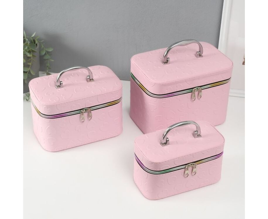 Набор шкатулок для украшений с зеркалом "Сердца", 3 шт., искусственная кожа