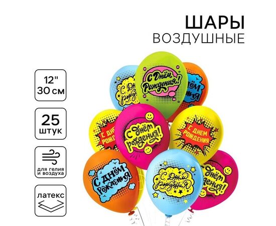 Набор воздушных шаров латексных 12 дюймов "С днем рождения! Комиксы", 25 штук