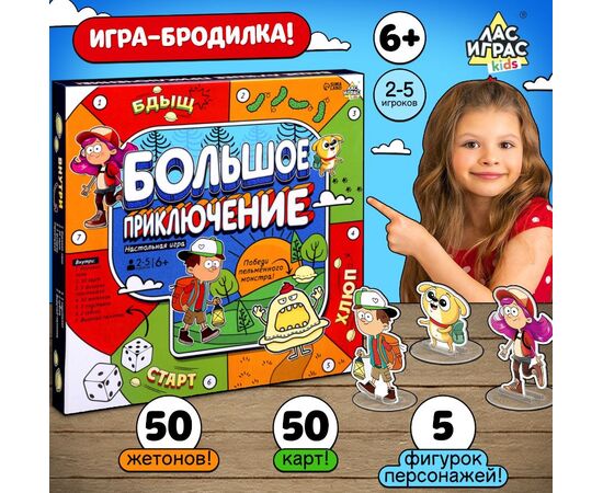 Настольная игра ходилка - бродилка "Большое приключение", от 2 до 5 игроков