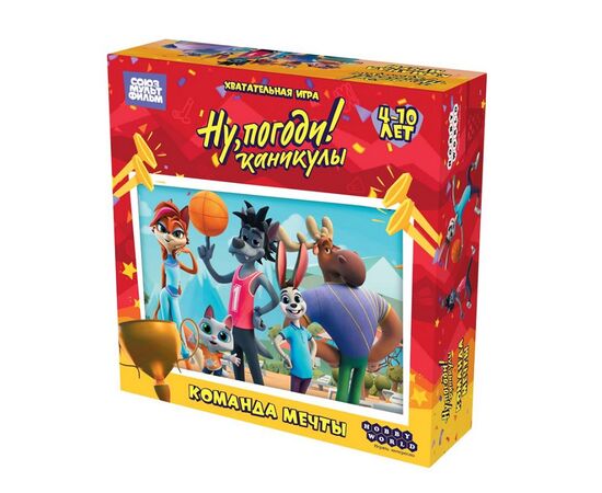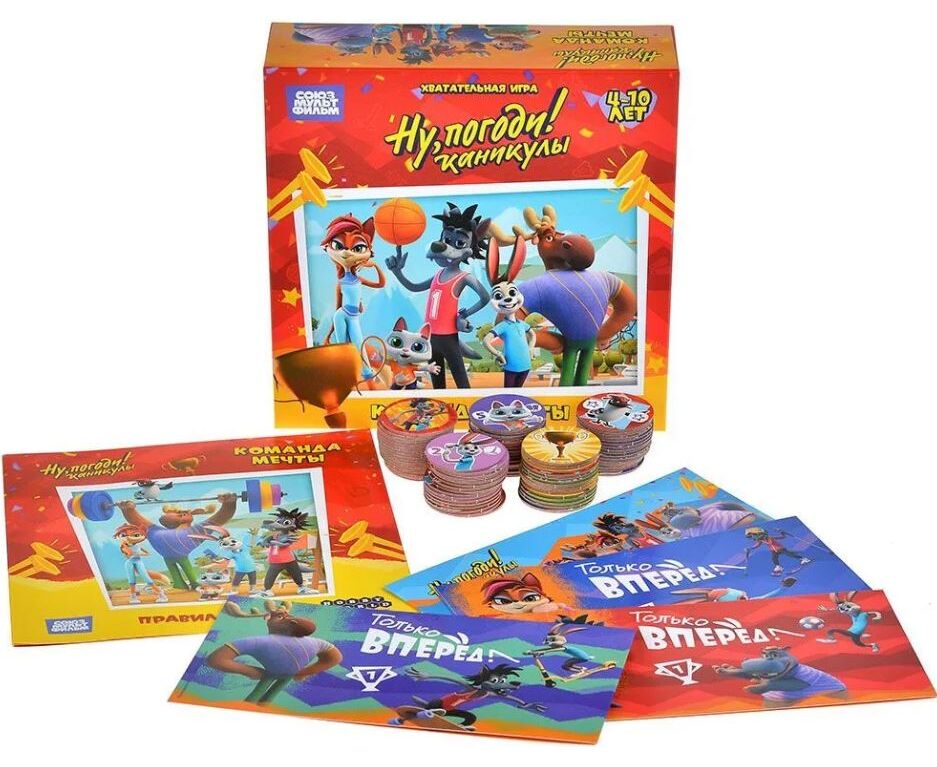 "Ну, погоди: Команда мечты" – испытание на скорость и сообразительность! Не ждите своего хода – скорее хватайте жетоны! Подмечайте подходящие жетоны, развивайте внимательность и память! Первым соберите команду мечты и получите заветный кубок!