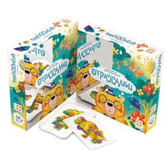 В состав настольной игры Отражалки входят:  40 больших карточек с изображениями, состоящими из половинок предметов; 64 маленькие карточки с предметами, которые нужно искать на больших карточках; 6 зеркал; правила игры.