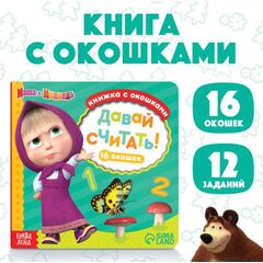 Книга с окошками "Маша и Медведь. Давай считать!", 16 окошек