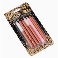 Свечи в торт "С днём рождения" 6 шт, 14 см, розовый металлик