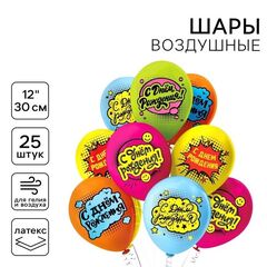 Набор воздушных шаров латексных 12 дюймов "С днем рождения! Комиксы", 25 штук