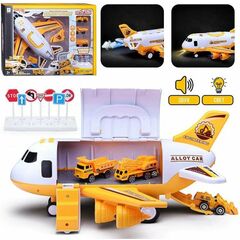 Игровой набор "Грузовой самолет + 3 машинки" цвет желтый, с паром, светом, звуком