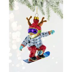 Елочная игрушка стеклянная "Олень на сноуборде"