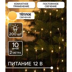 Гирлянда "Конский хвост", 10 нитей по 2 м, свечение теплое белое