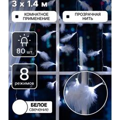 Гирлянда - занавес "Перья", свечение белое, 8 режимов