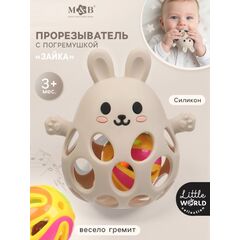Прорезыватель погремушка «Зайка», силиконовый, 12.5 см, бежевый