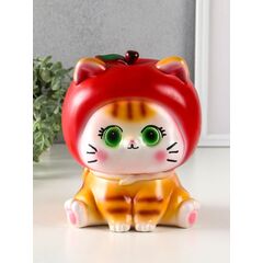 Копилка для денег "Кот в костюме яблоко", гипс, красный, 21×17×17 см