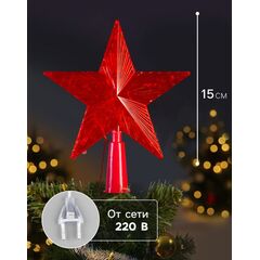 Светодиодная звезда на елку, свечение красное, 15 см