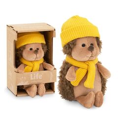 Мягкая игрушка "Ежик Колюнчик в желтом шарфике и шапке", 15 см