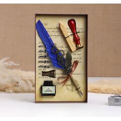 Набор подарочный 5 в 1 "Стимпанк" (перьевая синяя с шестеренками ручка, чернила, печать, воск)