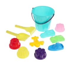 Песочный набор: ведро, лопатка, грабельки, 8 формочек