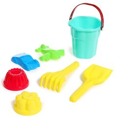 Песочный набор: совочек, грабельки, сито, ведерко, 4 формочки