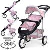 Коляска кукольная трость, металлическая, 3-х колесная, с корзиной и козырьком