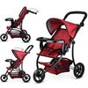Коляска для кукол 3-колесная, металлическая, прогулочная, с тентом, с корзиной ,цвет бордовый