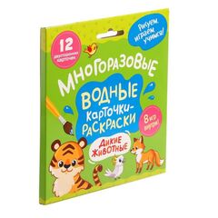 Многоразовые водные карточки-раскраски "Дикие животные", 12 шт