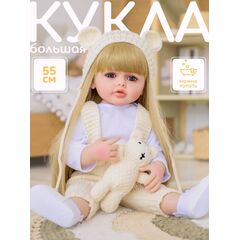 Кукла интерактивная виниловая "Лера с игрушкой в вязанном белом костюмчике", 55 см