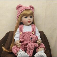 Кукла интерактивная виниловая "Кира с игрушкой в вязанном белом костюмчике", 55 см