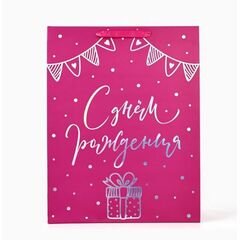 Пакет ламинированный "С Днём рождения", глиттер, L 40×31×11.5 см