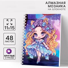 Алмазная мозаика с частичным заполнением на блокноте "Модница", 48 листов
