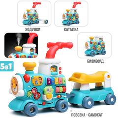 Ходунки - каталка 5 в 1 "Паровоз - самокат", с паром, цвет бирюзовый