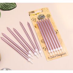 Свечи в торт "С днём рождения" 6 шт, 14 см, розовый металлик