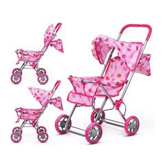 Коляска прогулочная складная "Клубнички на розовом", с тентом