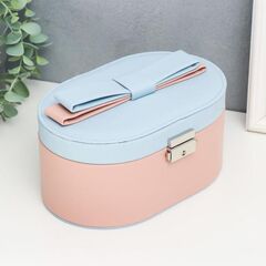 Шкатулка для украшений "Бант", с зеркалом, искусственная кожа, с замком, персиково-голубая