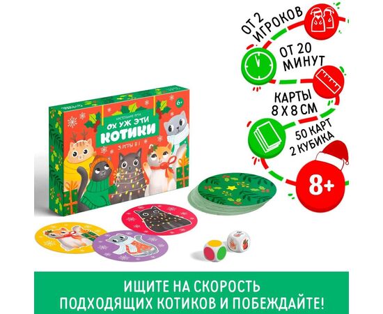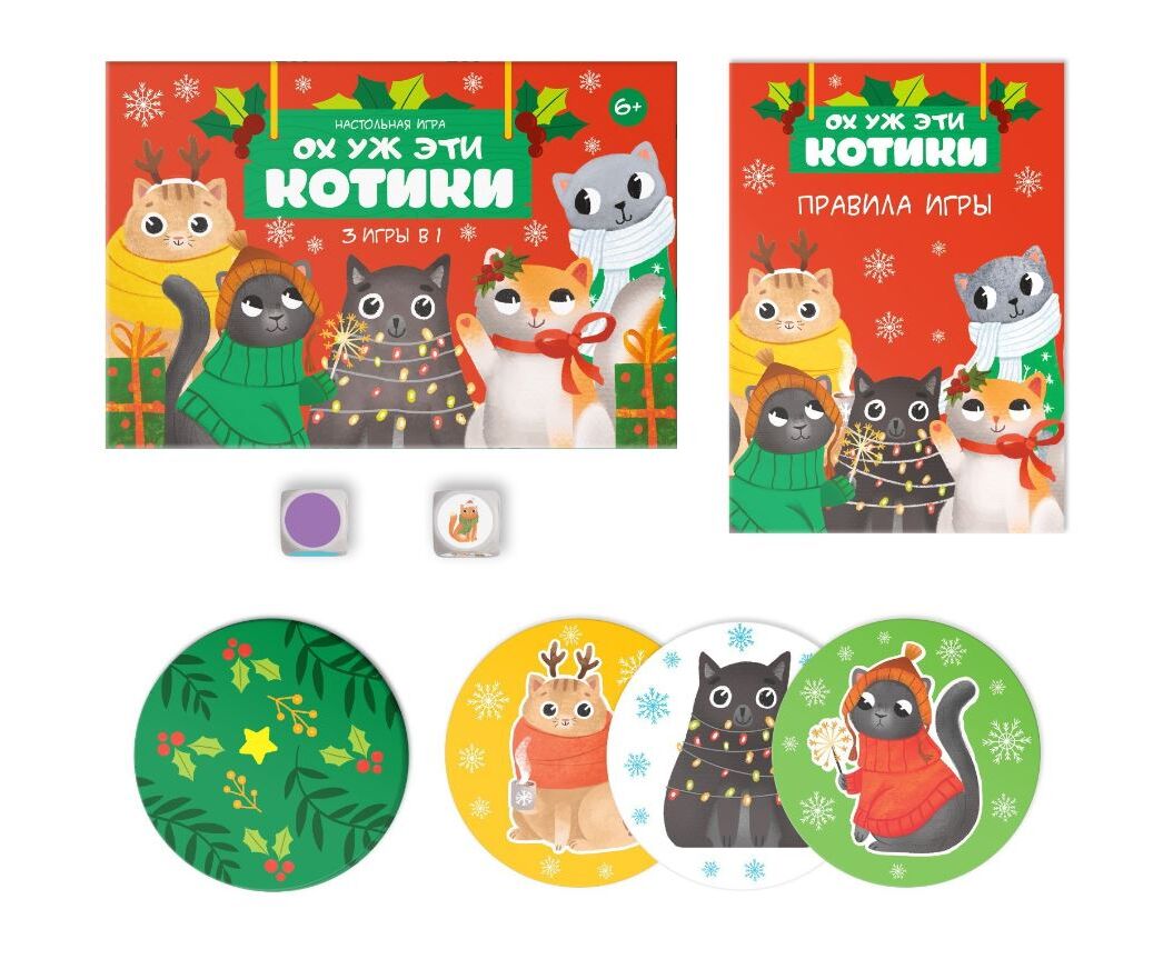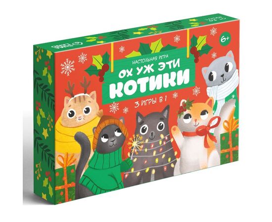 Новогодняя настольная игра «Новый год: Ох уж эти котики», 3 в 1