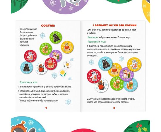 Это лишь один из вариантов игры. В правилах вас ждёт ещё 2 способа использования карточек и кубиков.