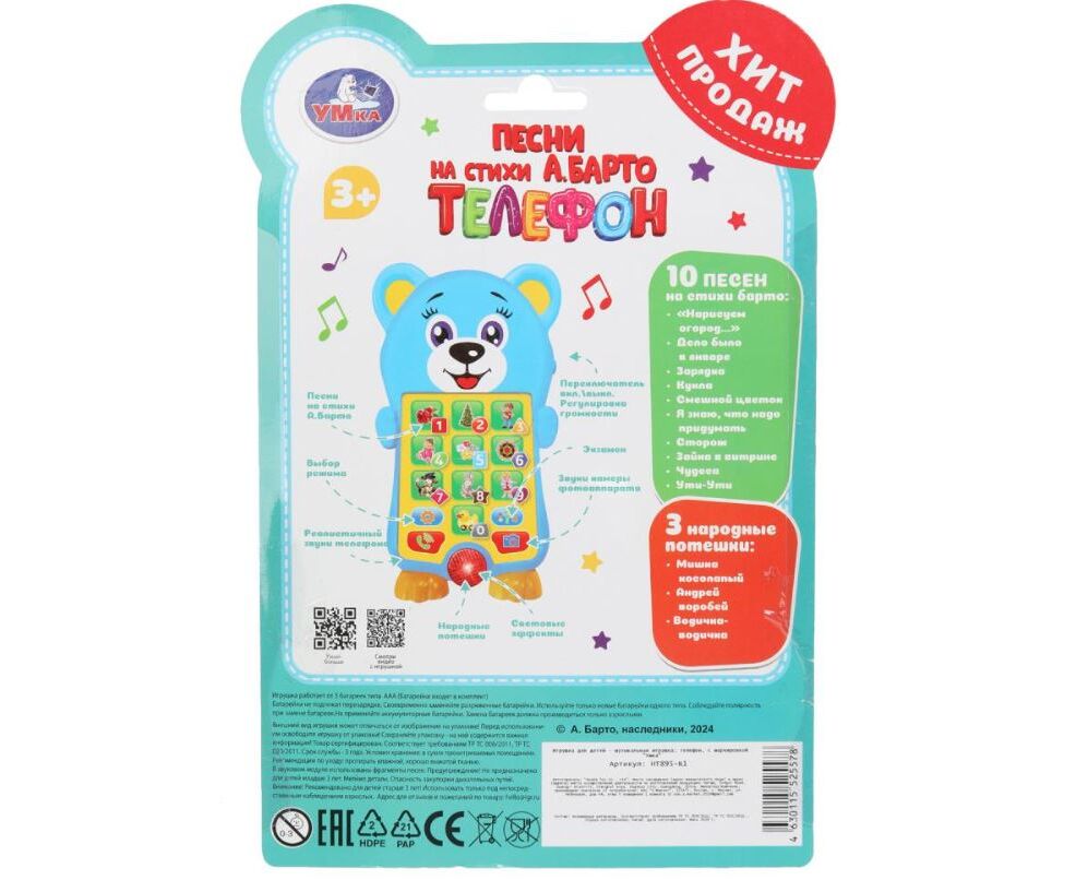 Обучающий телефончик "Мишка", 100 песен и потешек