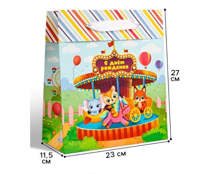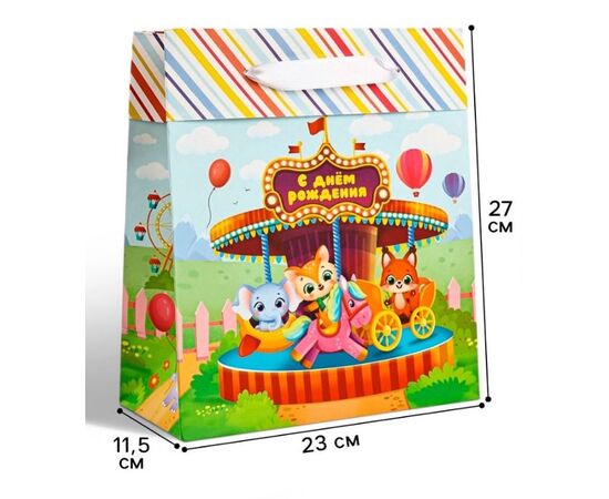 Пакет ламинированный двухсторонний "С Днём рождения", карусель, ML 23×27×11.5 см
