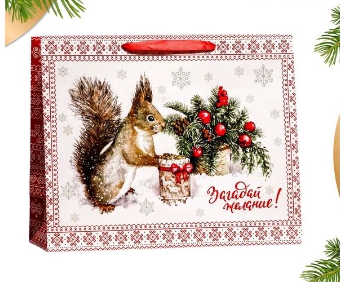 Пакет подарочный ламинированный горизонтальный "Белочка!", 49×40×19 см