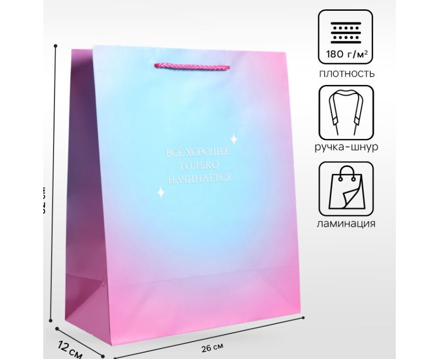 Пакет подарочный ламинированный "Только начинается", 26×12×32 см
