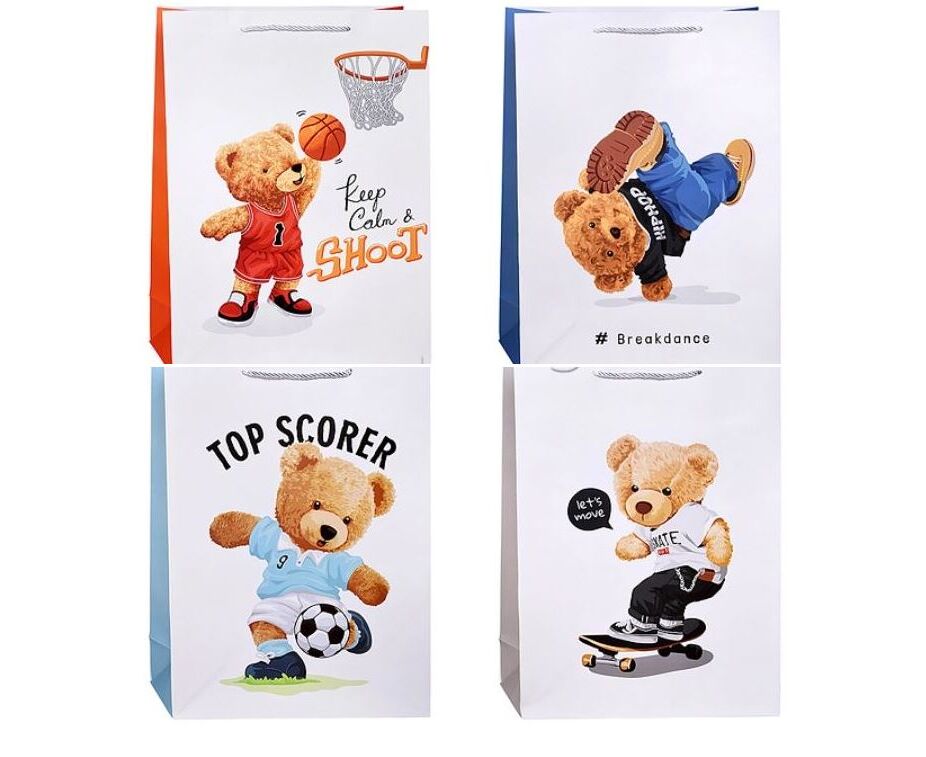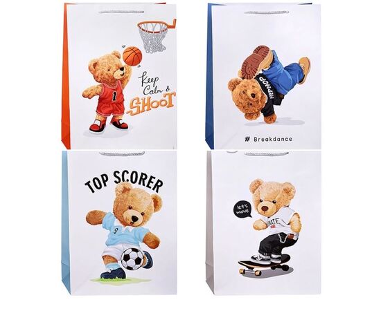 Пакет подарочный "Мишка спортсмен", в ассортименте, 30 х 41,5 см