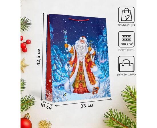 Пакет подарочный новогодний ламинированный, "Дед Мороз", 33×10×42.5 см