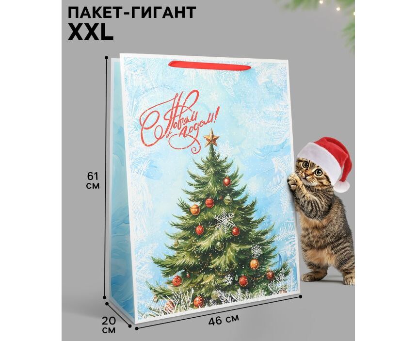 Пакет подарочный новогодний ламинированный "Елочка", 61×46×20 см
