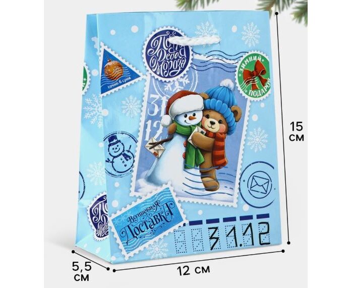 Пакет подарочный новогодний ламинированный "Новогодняя посылка", S 12×15×5.5 см