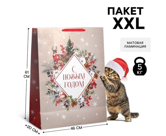 Пакет подарочный новогодний ламинированный «С Новым годом», 61×46×20 см