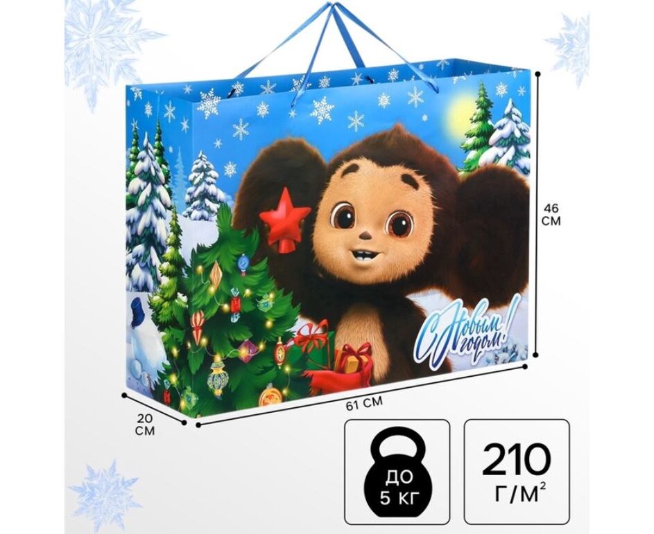 Пакет подарочный новогодний "С Новым годом!", 61×46×20 см, упаковка, Чебурашка
